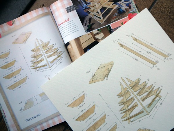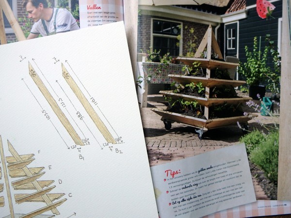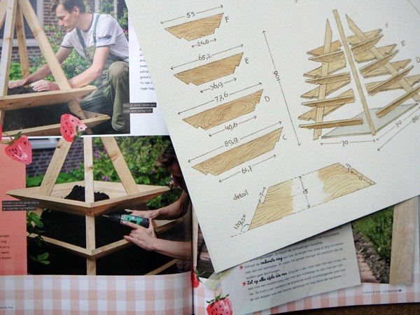 Hoe bouw je je eigen aardbeienpiramide? Nick van Zutphen ontwierp een prachtig verrijdbaar exemplaar. Ik mocht de werktekening voor Landleven maken.