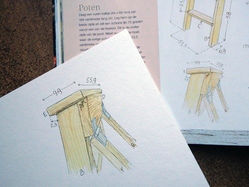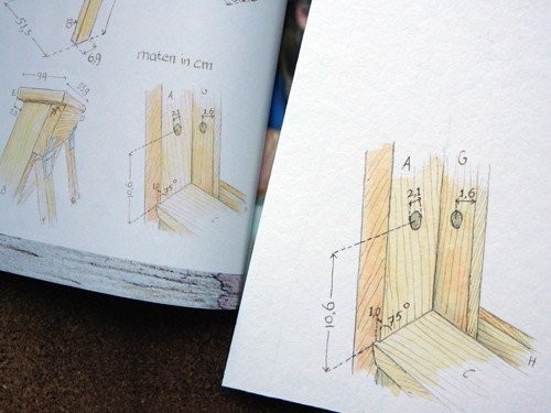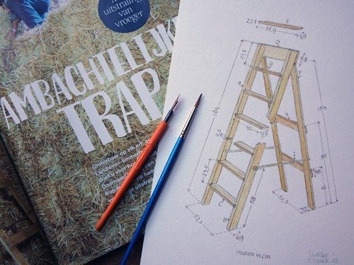 Aan de hand van instructies van Landleven timmerman Nick van Zutphen maakte ik de illustraties voor deze ambachtelijke trap.