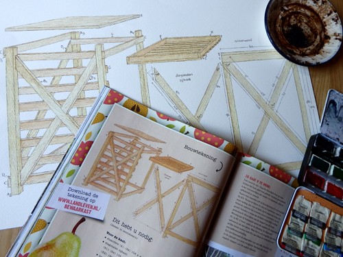 Ik toog aan de slag met de meetlat, en daarna met aquarel en bister, penseel en pen. De uiteindelijke tekening staat in Landleven nummer 8 van dit jaar.