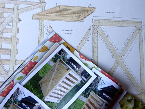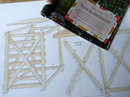 Zo stond hij vorig jaar op mijn inrit, deze mooie en handige kast om appels in te drogen. Hiervan moest voor Landleven een bouwtekening gemaakt worden.