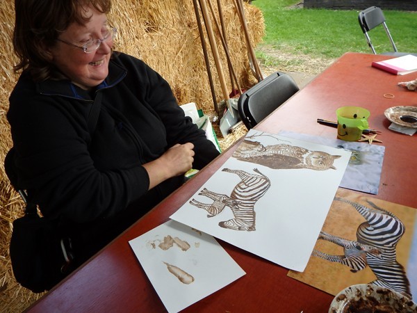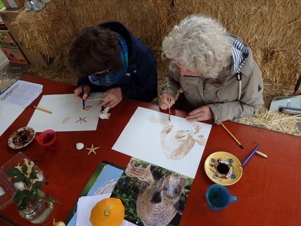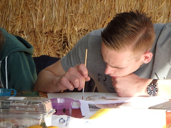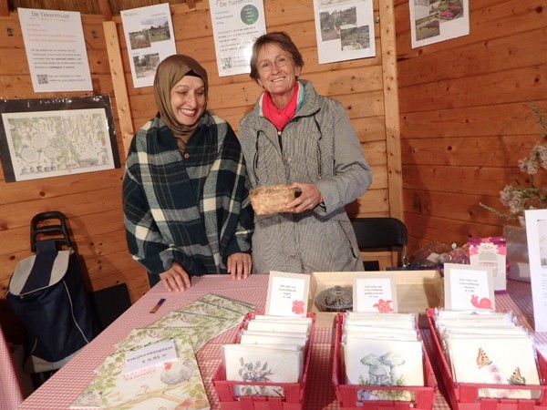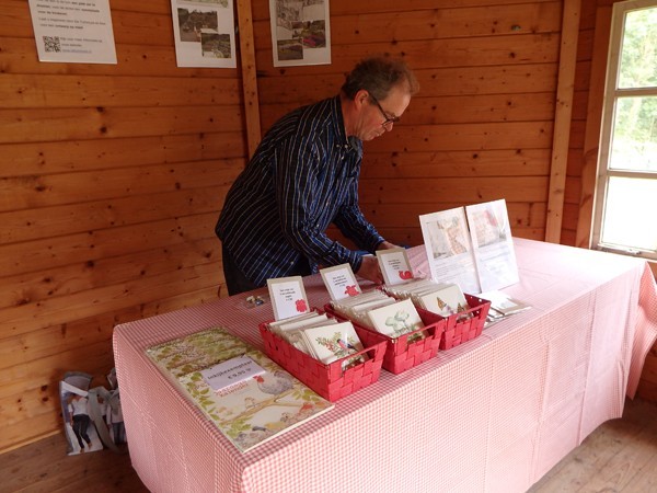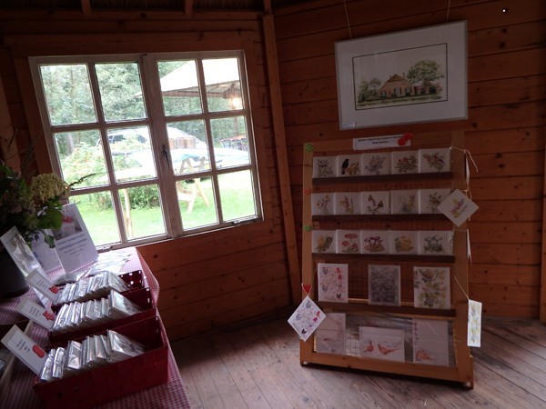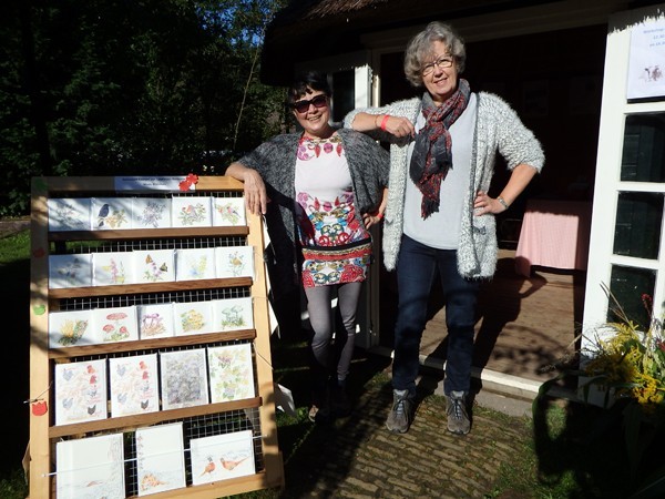 Voor mijn werk en producten mocht ik ook dit jaar weer gebruik maken van het theehuisje van Hoogmade. Onder de grote, vlak ernaast gelegen kapschuur gaf ik de tekenworkshop. Dit jaar deelde ik die ruimte met de Vogelbescherming. Gezellige buurtjes!