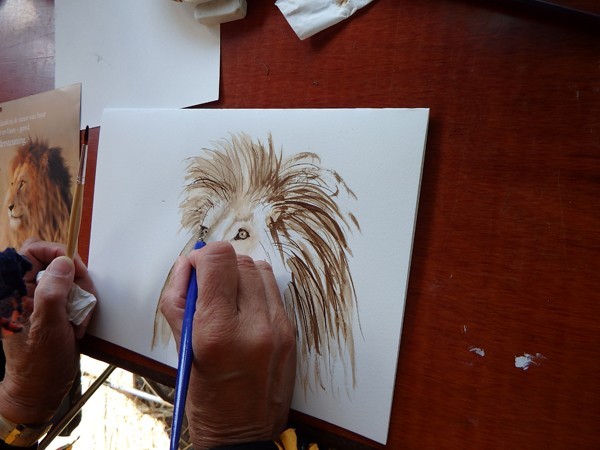 Het thema van dit jaar was: Langs het tuinpad van mijn vader. Volop nostalgie dus! De prachtige sepia-achtige kleur van bister, waarmee ik de deelnemers liet tekenen en schilderen, sloot er perfect op aan.