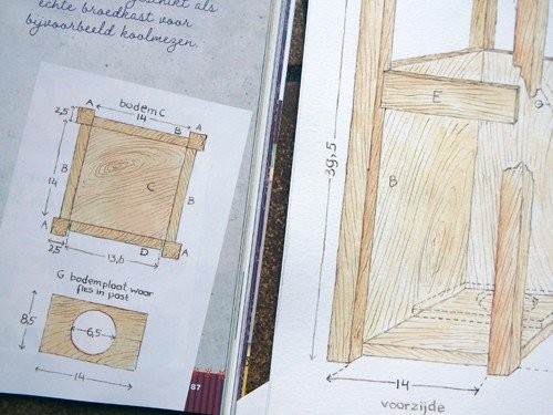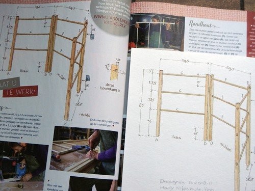 Een leuk kastje met een verrassing erin, en een nostalgisch droogrek: daar mocht ik de bouwtekeningen voor maken.