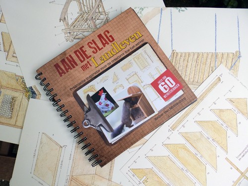 Voor wie thuis blijft is het alternatief: pak het inspirerende boek, waarin Esther van Middendorp een heleboel favoriete artikelen heeft gebundeld. Allerlei projecten waar de creatieve doe-het-zelver zich in vast kan bijten. Overzichtelijk en met duidelijke werkbeschrijvingen. Vol bouwtekeningen die ik eerder had gemaakt voor publicaties voor Landleven. Ik ben helemaal enthousiast over de uitvoering van het boek: 'Aan de slag met Landleven'. Zo nostalgisch uitgevoerd, dat je de geur van hout en de schuur ruikt waarin je die producten gaat maken. En dan die uitklappagina's: handig!
