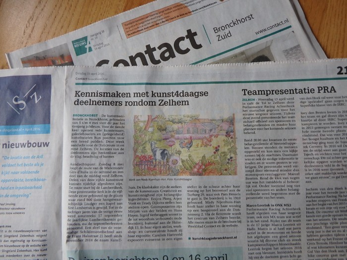 Van donderdag 5 mei t/m zondag 8 mei vond de Kunst4daagse Bronckhorst plaats. Diverse kunstenaars, galeries en ateliers zetten dan hun deuren wijd open voor iedereen die geInteresseerd is. Natuurlijk doe ik mee.