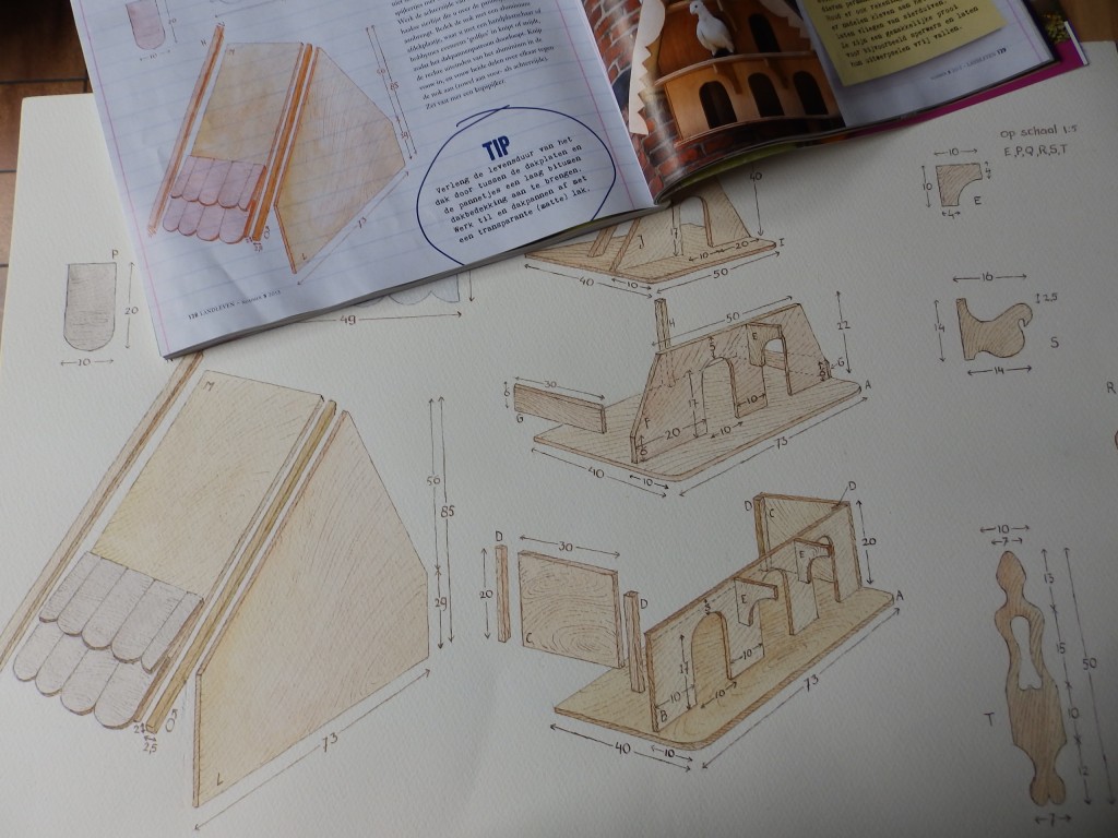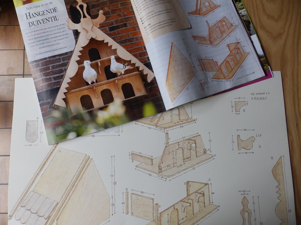 Voor het nieuwste nummer van het blad Landleven (2013-5) dat nu in de winkels ligt, mocht ik de bouwtekeningen maken voor een hangende duiventil. Een leuke uitdaging!