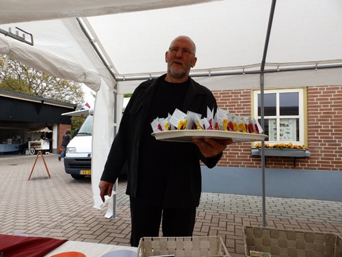 Samen met hun team zorgden ze goed voor ons, standhouders. Heerlijke koekjes van Alma's hand bij de koffie, zelfgemaakte tomatensoep en lekkere broodjes ..... Het is geen straf om daar te staan. Alleen het weer mocht wat warmer. Ik was al blij dat het later op de dag droog bleef.