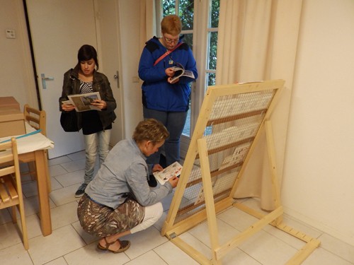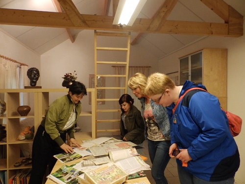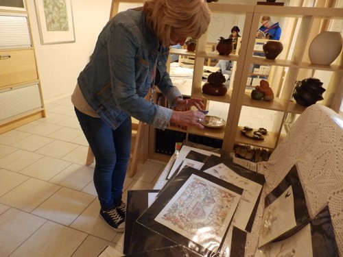 Ik legde uit hoe de gang van zaken is als ik tekenopdrachten krijg voor een blad als Landleven, of voor andere producties. Mijke, Frances en Henny maken onder begeleiding van Anne-Marie ook prachtige tekeningen, zag ik op Anne-Marie's mobiel.