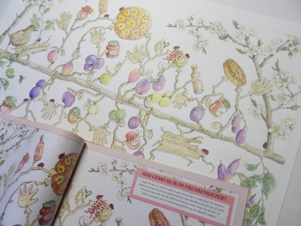 Het resultaat is een feestelijke tekening van diverse pruimensoorten, waarbij de letters verwijzen naar de desbetreffende pruimenpaspoortjes.