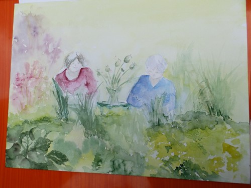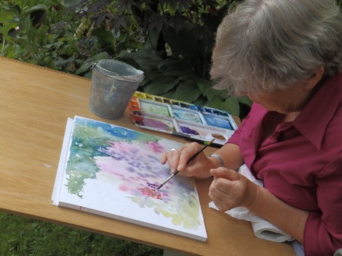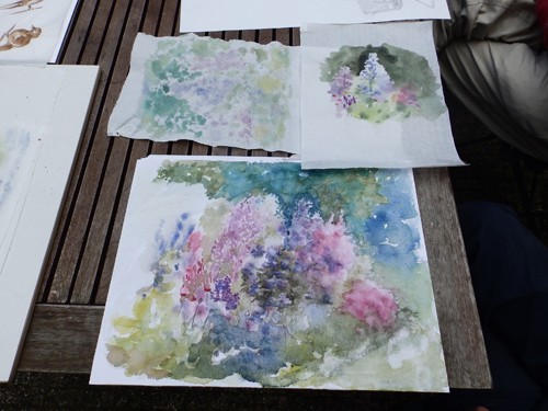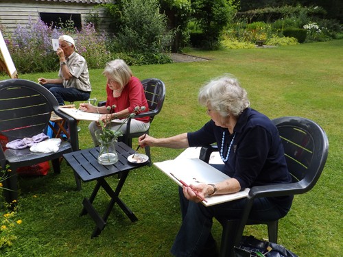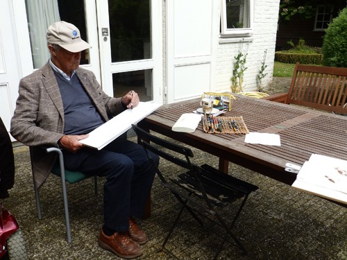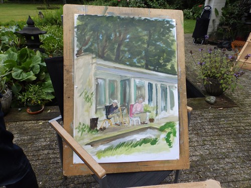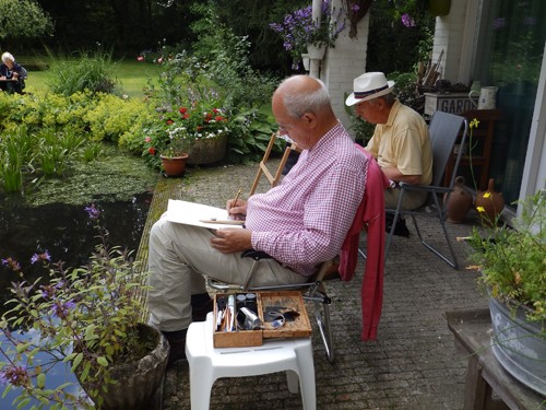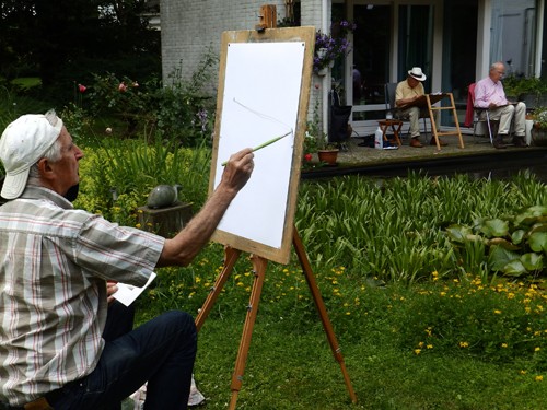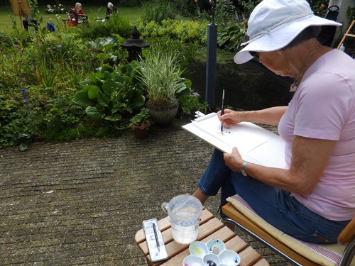 Schildervrienden zouden op 1 juli schilderen in mijn tuin, maar de regen van de dag ervoor maakte dat ik allerlei alternatieven bedacht. Die bezorgdheid bleek niet nodig!