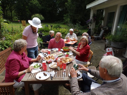 Het werd een stralende dag. We begonnen natuurlijk met koffie en de notentaart, meegebracht door Jan, volgens zijn recept: zalig! Uiteindelijk had ik er de meeste stukken van op.
