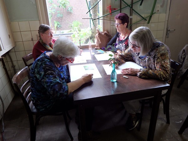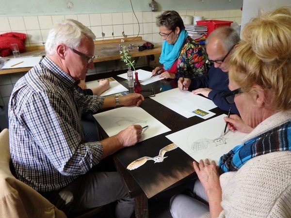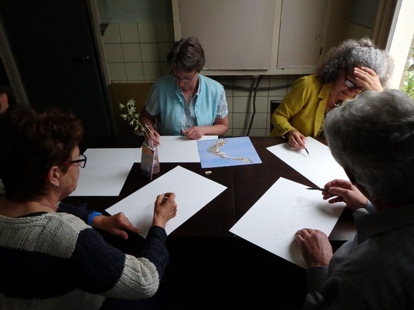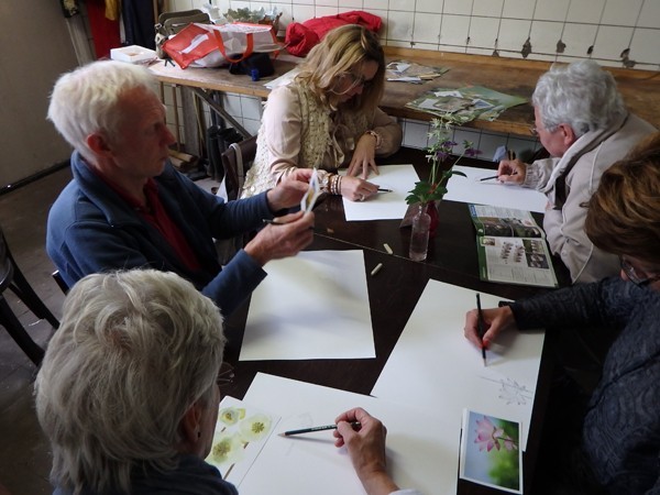 Het is zo heerlijk om de deelnemers aan de workshop zo enthousiast en toegewijd te zien werken. En nog leuker is het om te zien hoe sommigen, die eerst uitriepen dat ze 'er niets van konden', een prachtige potloodtekening hadden gemaakt, boven hun eigen verwachting!