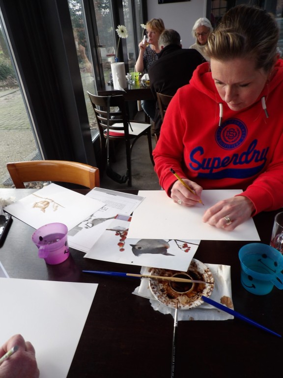 Op 21 januari 2023 namen acht sportieve dames deel aan een tekenworkshop met bister. Deze mocht ik geven in deTheetuin Vierakker.