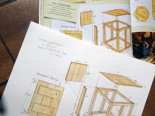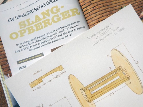 Landleven-timmerman Nick van Zutphen ontwierp een handig kastje voor de tuinslang. Ik maakte er de bouwtekeningen voor.