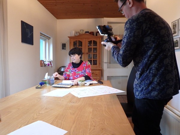 De filmploeg bestond uit de cameramannen Mitch en Rutger; Charlaine had de regie. Zij wees aan waar ik moest zitten, waar de mannen op moesten letten en gaf nu en dan aanwijzigingen. Van tijd tot tijd moest ik uitleg geven en vooral niet vergeten om soms in de camera te kijken.