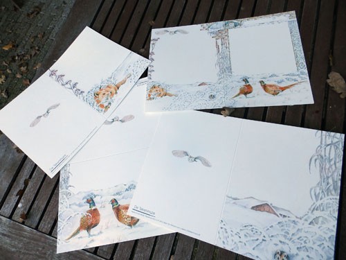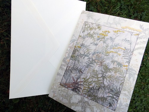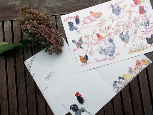De kippenkaart, boerenwormkruidkaart, hortensiakaart en kerstkaarten (A5-formaat; inclusief envelop) zijn 3,00 euro per stuk.
