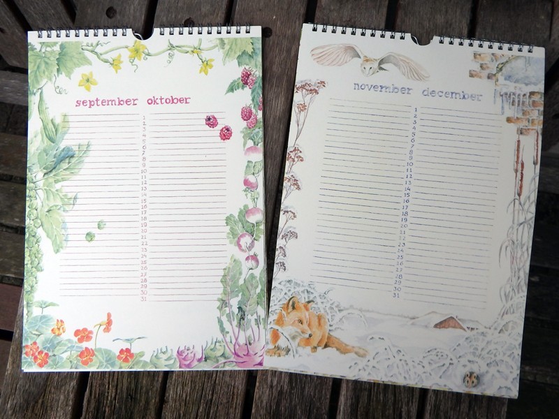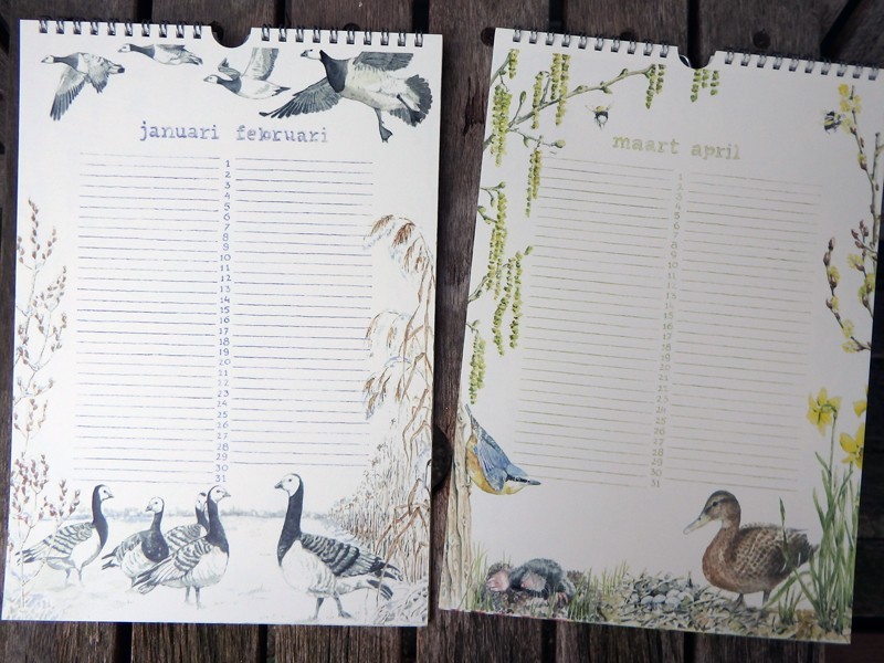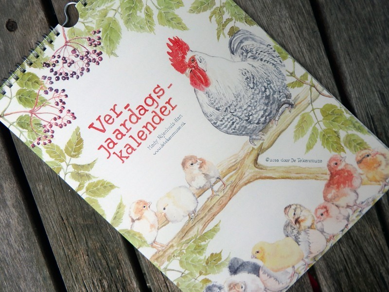 Deze verjaardagskalender is geïllustreerd met tekeningen die Mady voor het blad Landleven heeft gemaakt.
