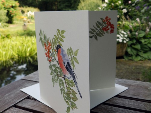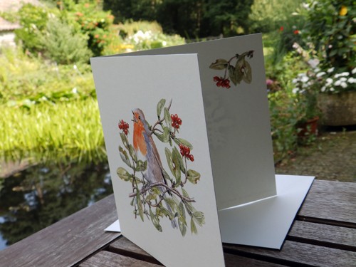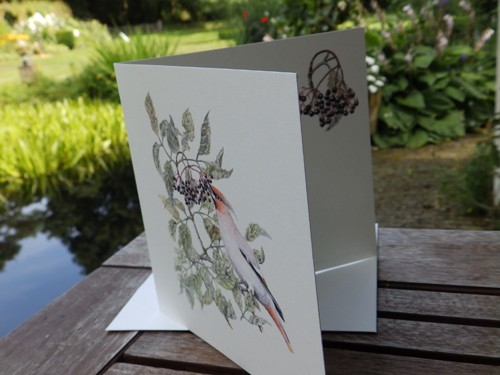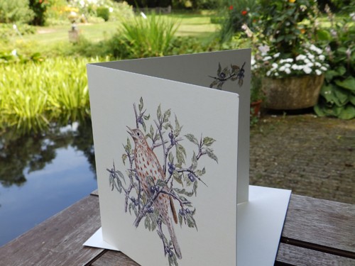 Op deze kaartenserie van vijf vogels staan ze afgebeeld met de bessen waarvan ze graag eten.