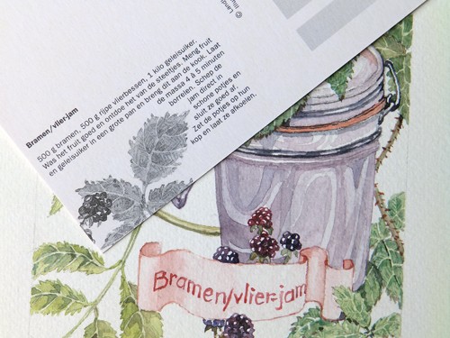 Mady tekende voor Landleven de kaarten. Op de achterkant staat het recept.